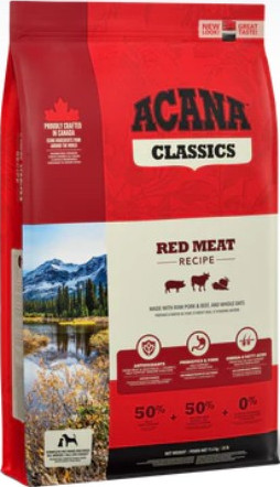 ACANA™ recipes are thoughtfully crafted from start to finish with delicious, quality ingredients. With a balanced 50/50 split between rich meat ingredients and nutritious fruit, grains and vegetables, ACANA Classics Red Meat recipe provides your dog with a filling and nutritious meal crafted from simple, wholesome ingredients. It also includes nutrient-rich ingredients that support three key health benefits, including immune function, healthy digestion, and healthy skin and coat. Feed your dog premium nutrition at a classic price with ACANA Classics Red Meat recipe.