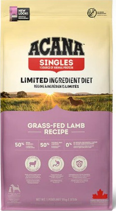 ACANA Singles recipes with 50% quality animal ingredients are rich in protein from a single animal source and balanced with 50% vegetables, fruit and nutrients2, such as fresh apples and fresh whole pumpkin to support healthy digestion. Making them great for choosy dogs or dogs with food sensitivities.