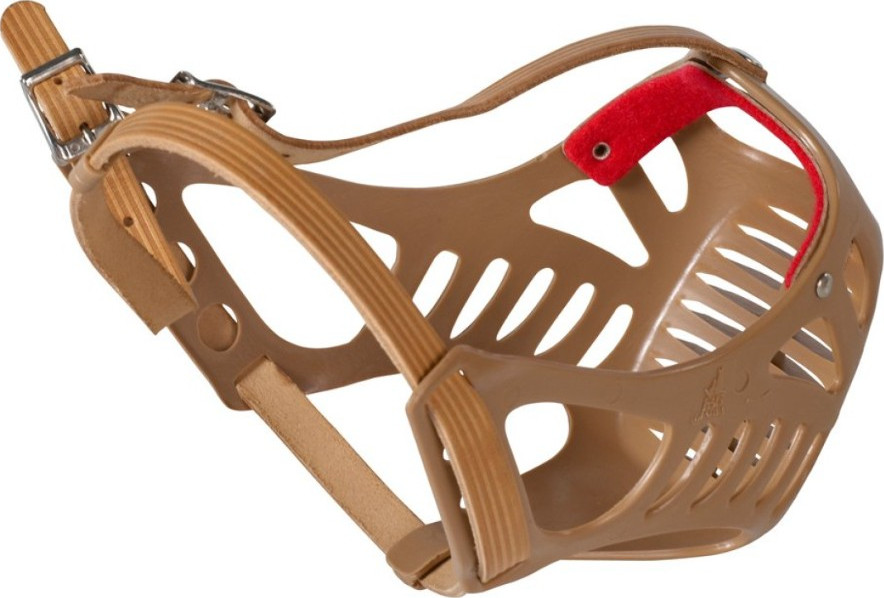 For Boxers. Made of strong, special plastic with nose reinforcement - with strong leather strap. Suitable for dog breeds such as Boxer, Pit Bull Terrier.