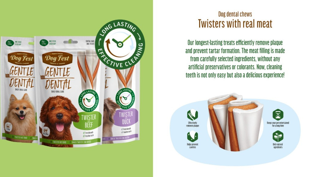 Our longest-lasting treats efficiently remove plaque and prevent tartar formation. The meat filling is made from carefully selected ingredients, without any artificial preservatives or colorants. Now, cleaning teeth is not only easy but also a delicious experience!