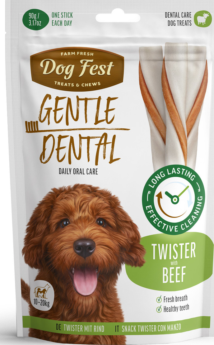 Dog Fest Dental Treats For Adult Dogs -Twister -Beef 90g (13cm)