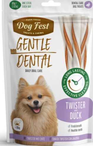 Product Description Dog Fest Dental Treats For Adult Dogs -Twister - Duck 80g (9cm)