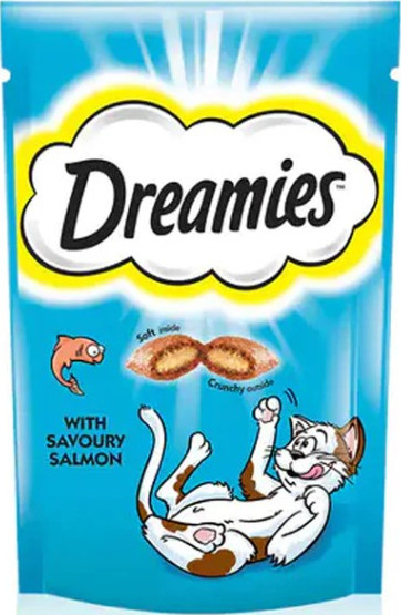 Dreamies manufactures a wide range of cat food products. They offer deliciously-flavored treats for your feline friends such as tuna beef chicken salmon turkey duck and cheese. Deliciously crunchy on the outside, and soft on the inside; cats can’t resist the great taste of Dreamers treats. Dual textured cat treats with Scrumptious Salmon flavor.