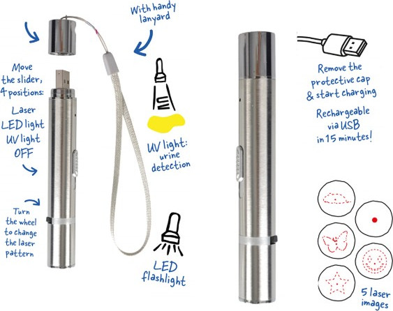 Product Description Duvo+ 7 in 1 Laser Cat Toy (urine detection) 11,5x1,5x1,5cm Silver