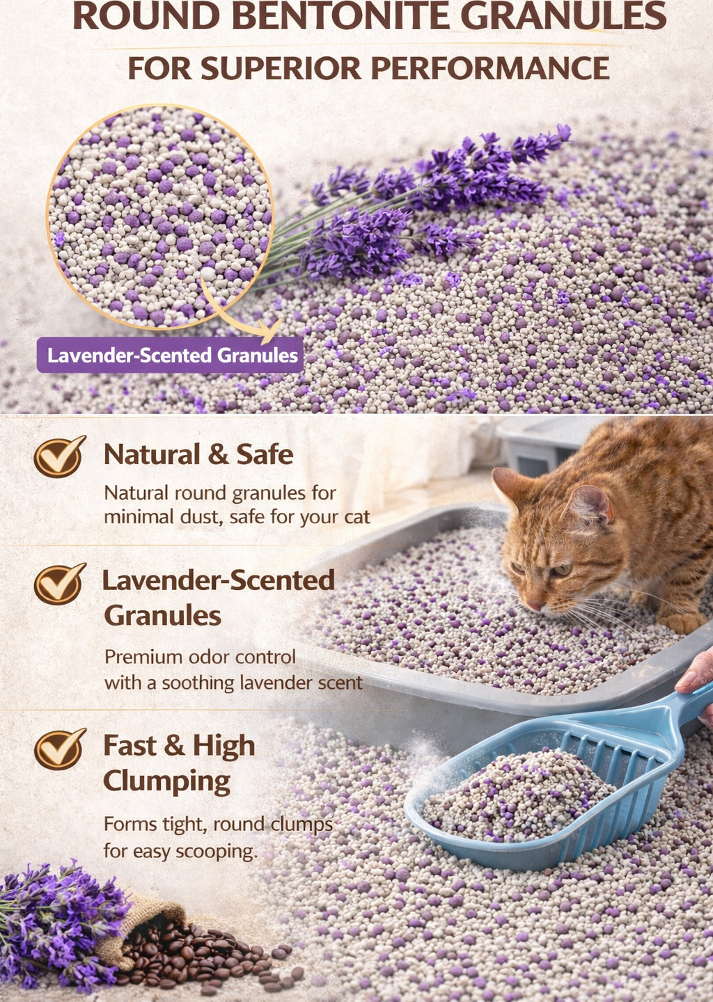 - Forms tight clumps → easy to scoop daily