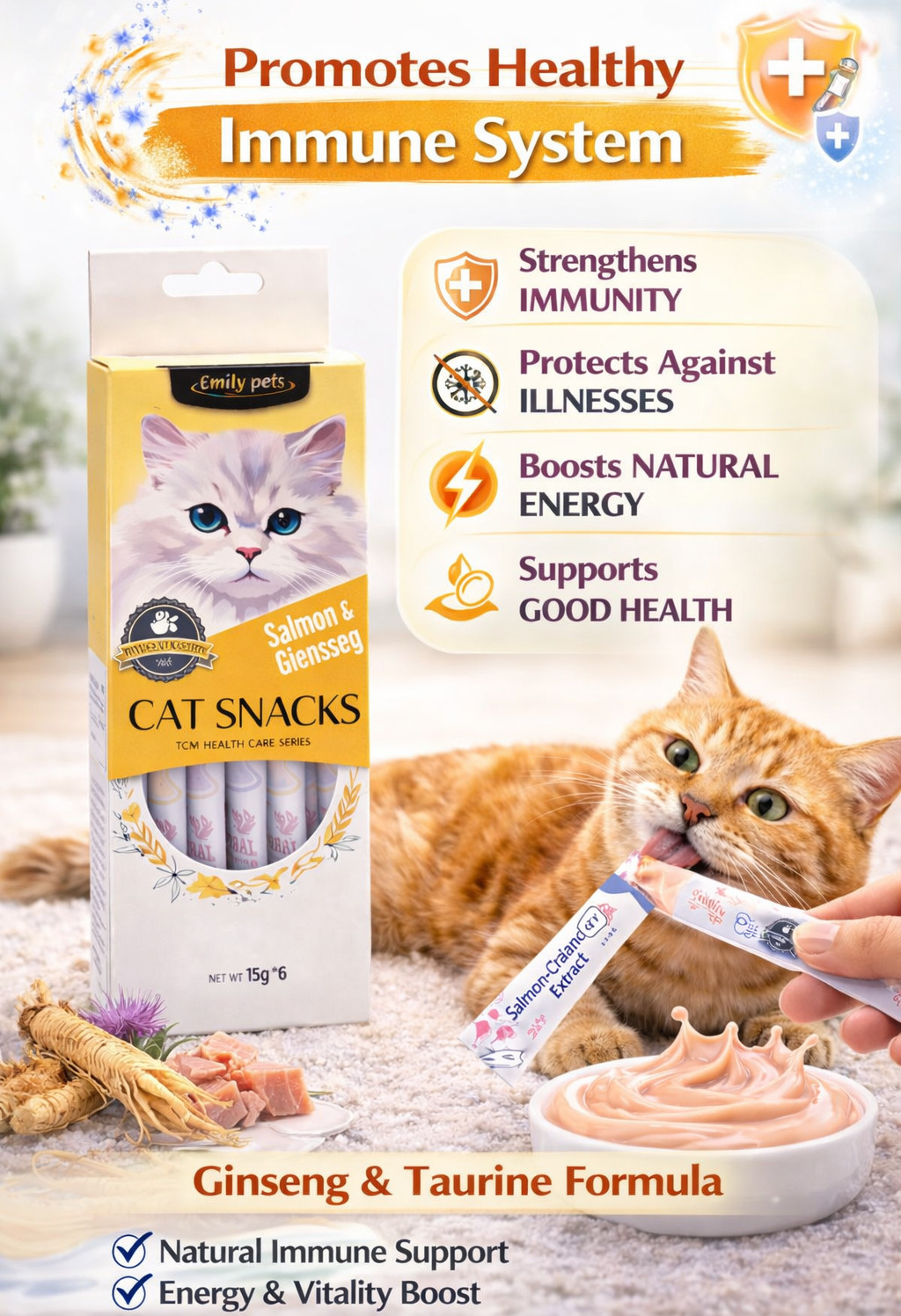 Product Description Emily Pets Liquid Snack Salmon & Ginseng (6 × 15g)