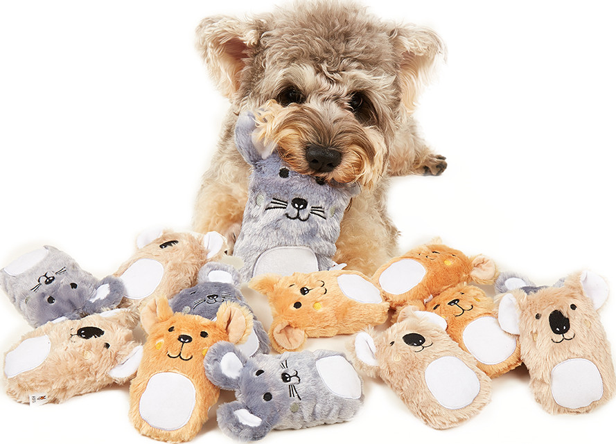 The FOFOS Plush Puppy Toy Display Box includes 12 assorted adorable animal toys, featuring designs like a mouse, koala, and bear. Soft and cuddly, these plush toys are perfect for puppies, providing comfort and playful fun. Each toy is made with gentle materials, ensuring safe and enjoyable playtime for your furry friend.