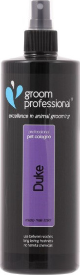 Treat our pet to the luxurious, long-lasting fragrance of Groom Professional Duke Dog Cologne. Perfect for male dogs, this cologne will leave your pet smelling fresh and sophisticated for days, making every grooming session a royal experience.