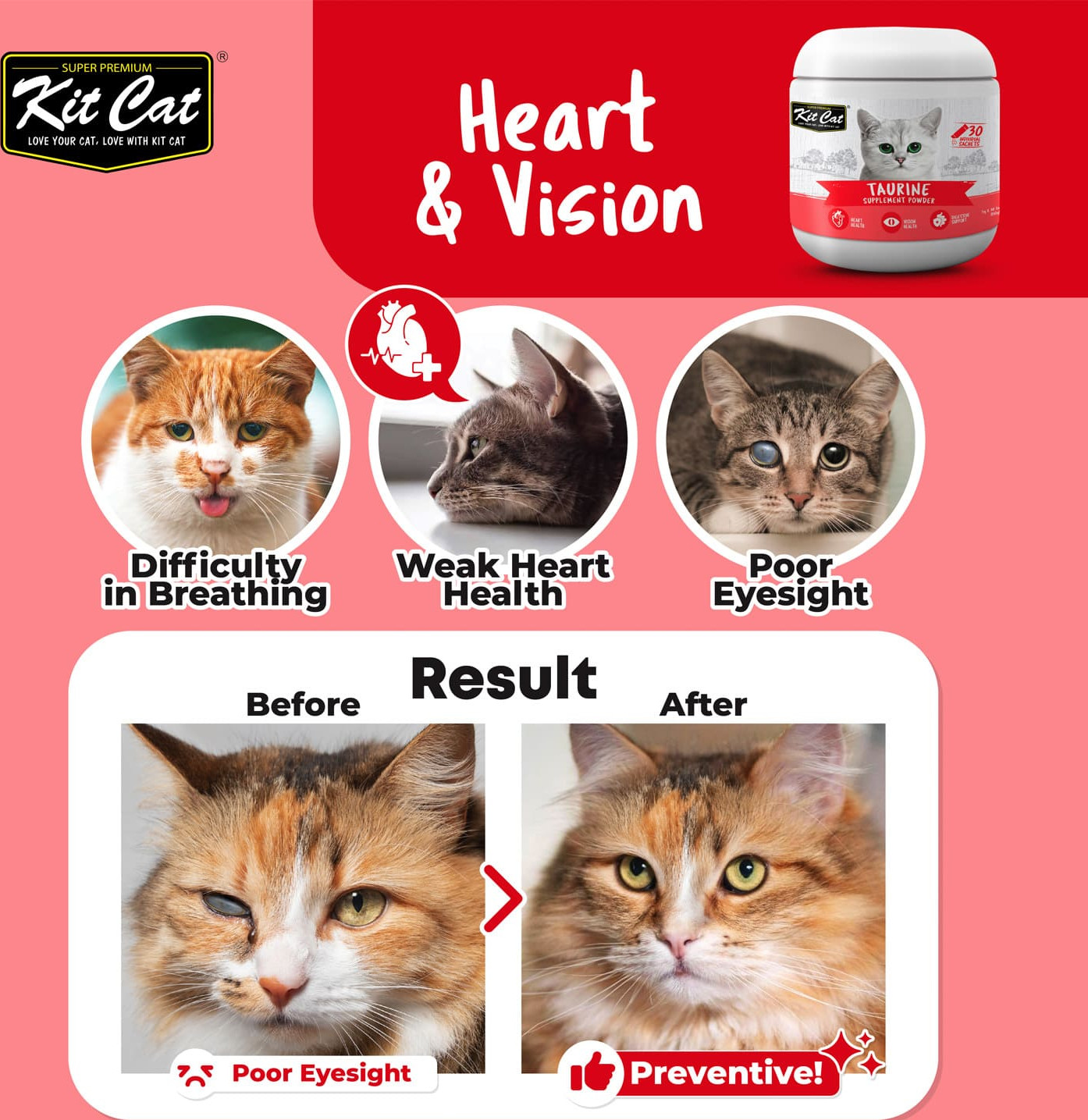 - Vision Health: Taurine is also essential for the health of a cat’s eyes and is necessary for the normal development and function of the retina.