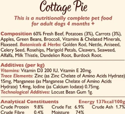 - Multipack of nutritionally complete adult wet dog food - Cottage Pie, Chicken & Turkey Casserole and Lamb Hotpot