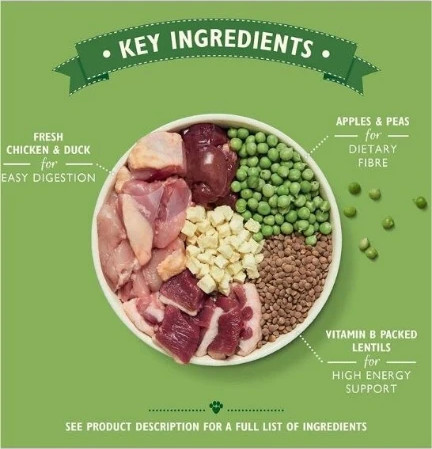 - Proper and balanced recipe with a high meat content of Duck and Chicken for sources of protein which develops muscle mass and sustains beautiful skin and coat