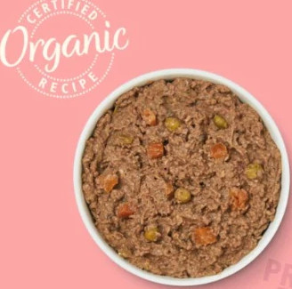 Ingredients - Chicken (28%); Pork (12%); Beef (10%); Organic Fish (7%); Organic Carrots; Organic Peas; Vitamins & Chelated Minerals; Organic Spirulina.