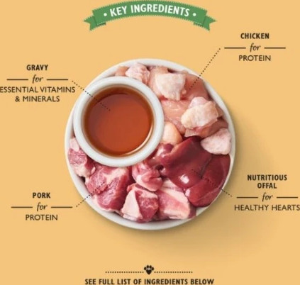 - Includes gravy for essential vitamins and minerals and nutritious offal for healthy hearts