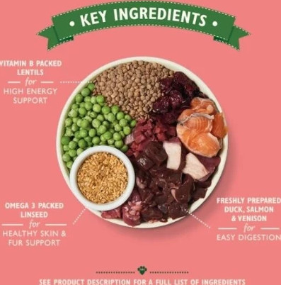 This lovely grain-free recipe has been made using freshly prepared venison, duck and salmon from the Great British countryside, together with healthy vegetables and botanical herbs. Wild Woodland Walk is made with fresh, free range, bone-free venison, duck, salmon, potatoes, wholesome pulses and tasty vegetables.