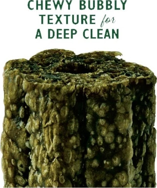 Dental chew with a difference - made with a clever spongey texture, this chew gets right down to the gumline to wipe away plaque and it's all thanks to natural ingredients.