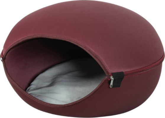 The Zolux Louna Cat Dome in Burgundy is a dome-shaped, igloo-style pet bed designed for cats or small dogs. It features a rich burgundy exterior, a rounded front opening, and a soft light grey interior cushion. Made from smooth synthetic fabric, it includes a zipper around the dome for easy removal or cleaning. The enclosed design offers warmth, comfort, and a sense of security—ideal for pets that enjoy privacy and cozy spaces.