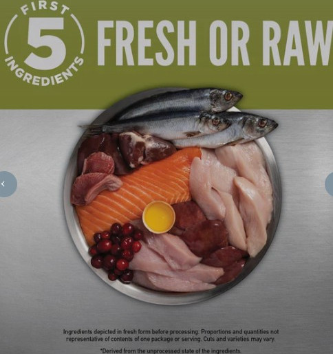 The first 5 ingredients are fresh or raw2 poultry and fish ingredients.