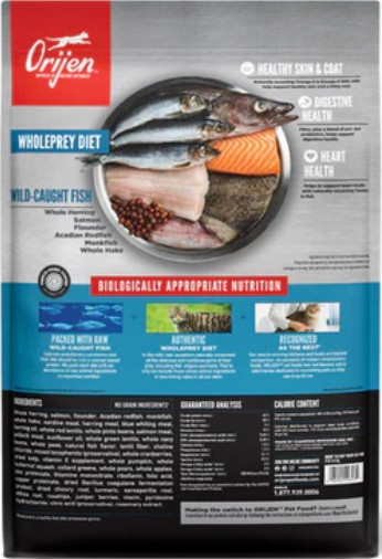 Help your cat thrive with the power of protein-rich recipes that provide peak nourishment. As obligate carnivores, modern cats are built like their ancestors and thrive on a Biologically Appropriate diet rich in protein and fat sourced from a variety of animal ingredients. ORIJEN™ Six Fish Recipe is made with fish from raw wild-caught whole herring, salmon, flounder, Acadian redfish, monkfish and whole hake. Packed with WholePrey animal ingredients like organs and bone, ORIJEN food is made with the most nutrient-dense, succulent parts of the prey to deliver the nutrition cats need. With 90% animal ingredients and a freeze-dried coating, this diet is beyond comparison.