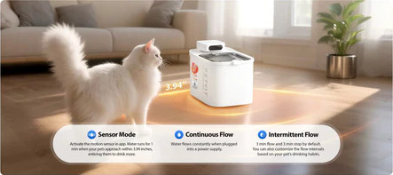 - Fresh Water in Multiple Modes: Sensor Mode, Continuous flow or intermittent mode based on pet preference; multi-layer filter removes hair, sediment, dirt, and impurities.