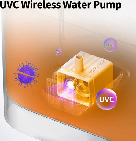 - UVC Pump: Wireless and worry-free — auto shut-off at low water levels, with UVC protection for cleaner, safer water.