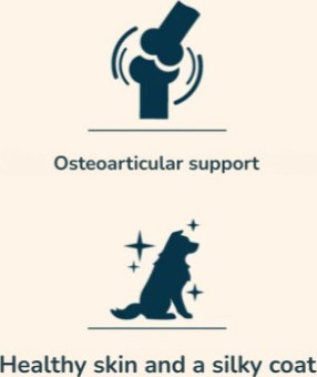 Healthy skin and a silky coat with the incorporation of biotin and zinc, and an optimal provision of omega-6 and omega-3 essential fatty acids.