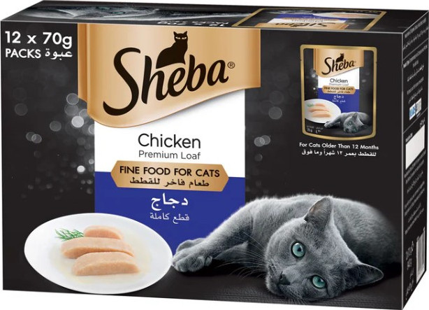 Product Description Sheba Fine Wet Cat Food Pouch Chicken Premium Loaf 12X70G