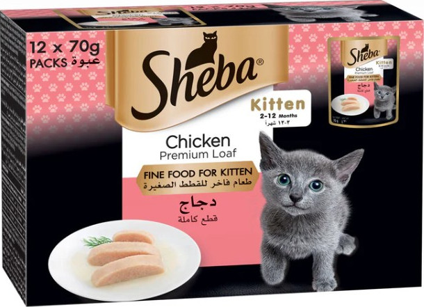 Product Description Sheba Fine Wet Cat Food Pouch Kitten Chicken Premium Loaf 12X70G