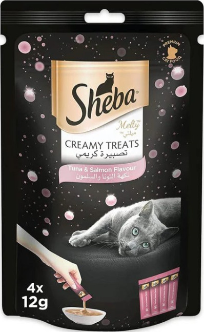 Product Description Sheba Melty Tuna & Salmon Creamy Cat Treats - FISH/4X12G