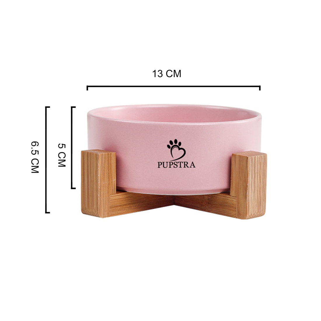 Elevate your pet's mealtime with our Modern Ceramic Dog & Cat Bowl, elegantly showcased on a Wooden Stand meticulously crafted from natural bamboo wood.