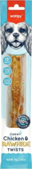 Product Specifications Wanpy Chewy 10″ Chicken Jerky & Rawhide Twists 70g