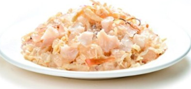 Chicken, Codfish, Starch, Carrageenan, Salt, Bonito, Extract of Green Tea, Vitamins (A, B2, B3, B5, D3, E), Polydextrose, Calcium Carbonate.
