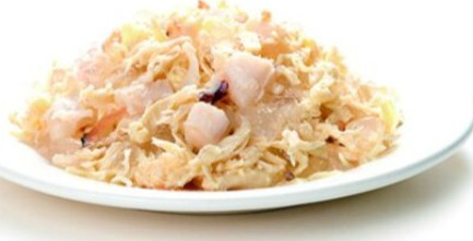 Chicken, Scallop, Starch, Carrageenan, Salt, Bonito, Extract of Green Tea, Vitamins (A, B2, B3, B5, D3, E), Polydextrose, Calcium Carbonate.