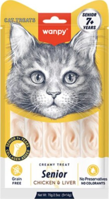 Product Description WANPY Creamy Treat For Senior 7+ Chicken & Liver 5X14G