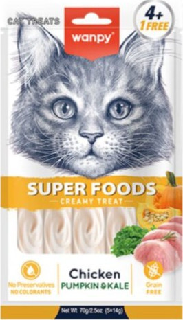 Product Description WANPY Superfoods Creamy Treat For Cat Chicken With Pumpkin & Kale 5X14G