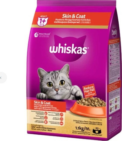 - WALTHAM APPROVED: This Whiskas skin and coat dry cat food is developed with our nutritionists and veterinarians of WALTHAM, a leading authority on pet nutrition.