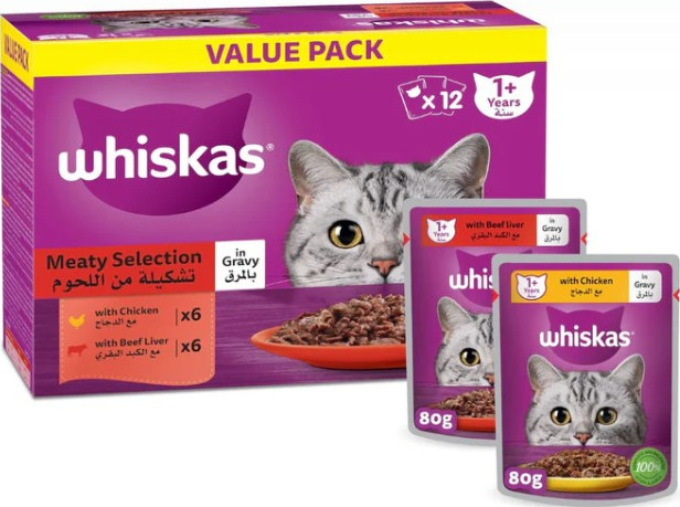 Product Description Whiskas Meaty Selection in Gravy Wet Cat Food 10+2 Multipack - 12X80G SKU SKU:110870-1