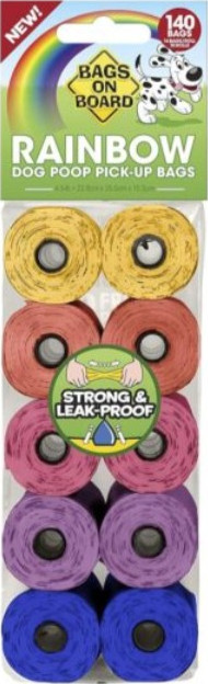 Bags On Board Rainbow Dog Poop Bags – 140 Bags