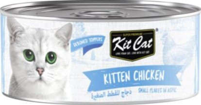 Kit Cat Deboned Toppers is a completely natural complementary cat food. Feed alongside Kit Cat complete dry cat food for a balanced diet. Feed 1 can daily per 2kg of body weight for adult cat. Pregnant and lactating cats may need more. Fresh drinking water should be available at all times. Serve at room temperature and refrigerate any unused portion.