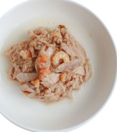 Deboned White Meat Tuna,Tuna Extract, WaterSufficient For Processing, Shrimp, Gelling Agent (Guar Gum), Thickening Agent (Modified Tapioca Starch), Vitamin E, Fructo Oligosaccharide, Taurine.