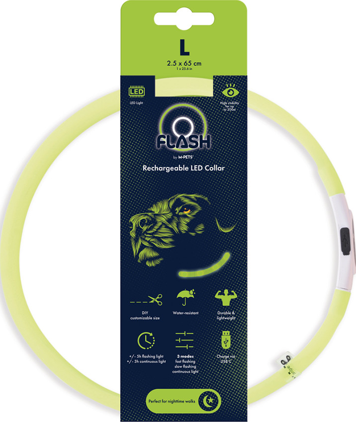 Product Description M-PETS Flash Led Rechargeable Collar L Green