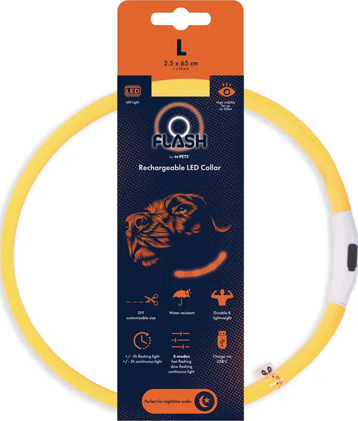 Product Description M-PETS Flash Led Rechargeable Collar L Orange