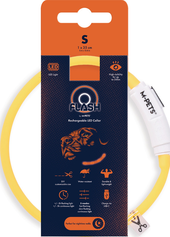 Product Specifications M-PETS Flash Led Rechargeable Collar S Orange