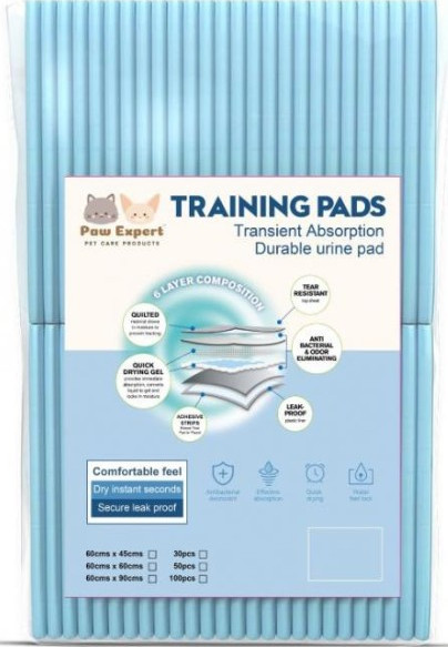 - SUPER ABSORBENT: Paw Expert Training pads are made with premium absorbent materials that can hold well over your pet's daily urination amount. The high capacity absorption of these pee pads can help with puppies, adults, and senior pets.